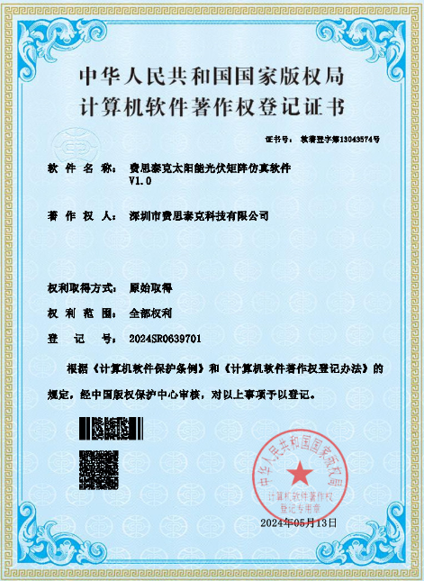 费思泰克太阳能光伏矩阵仿真软件软著证书