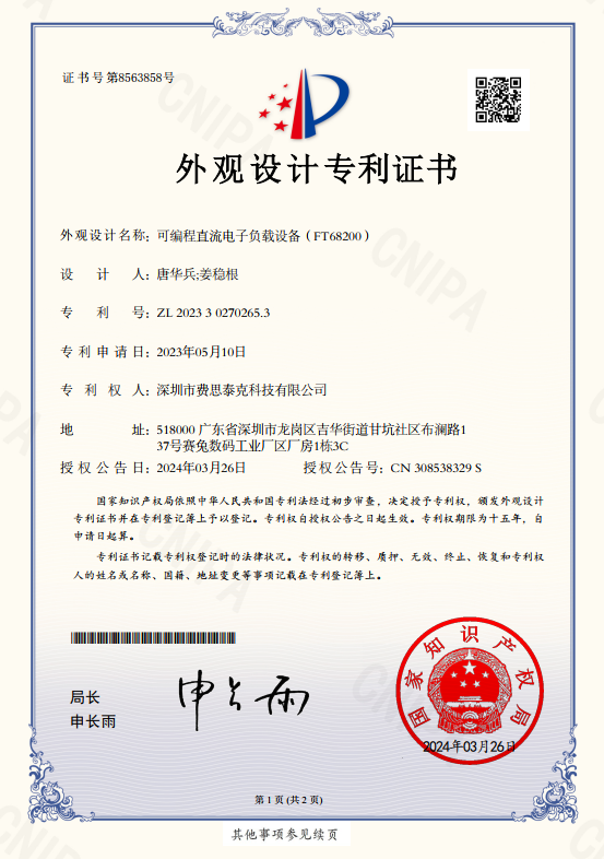费思专利_可编程直流电子负载设备(FT68200)
